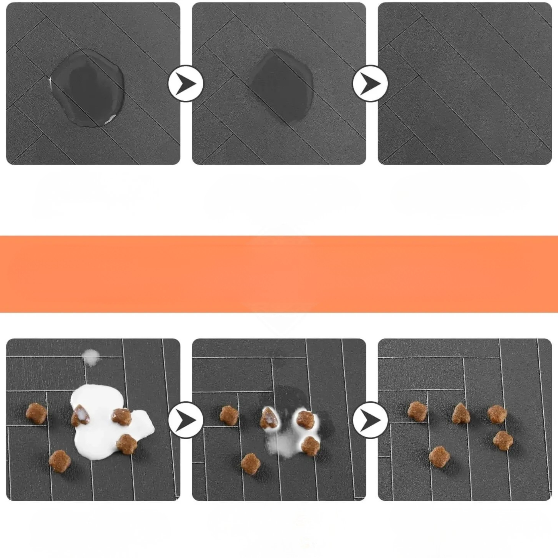 Surface absorbante et résistante aux taches: La surface de notre tapis pour gamelle est conçue avec un matériau spécial à absorption rapide. Elle capture efficacement l'eau, le lait ou les liquides renversés, empêchant les flaques et les taches tenaces. Elle sèche rapidement pour maintenir une zone d'alimentation hygiénique.